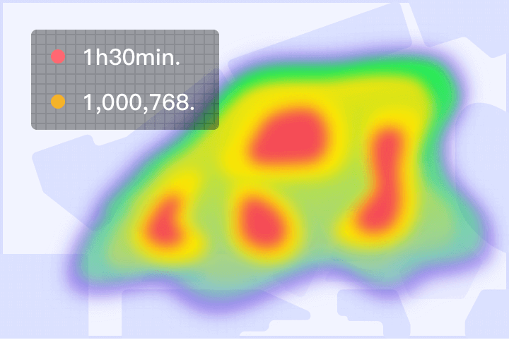 系统可支持分析可分析商场、门店及区域的平均停留时长,结合客流分析顾客品牌喜好。并支持人流热力图进行实时数据监测
